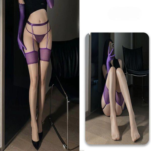 storeago003925s0d974bkm 超薄型メッシュサスペンダーストッキング(肌色・紫) オイリー テカテカストッキング オーロラ美脚 オープンガータースタイル F516